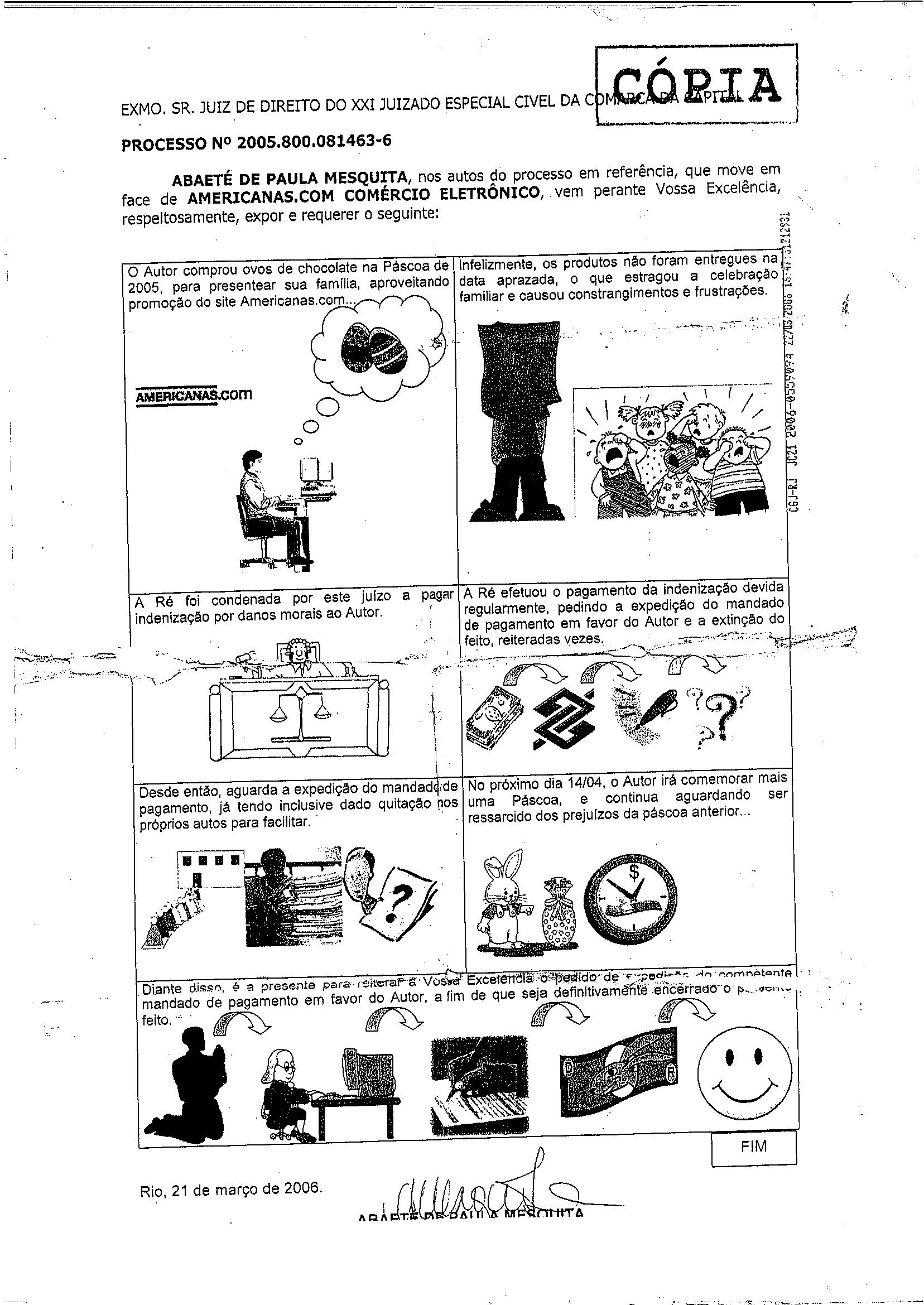 Um advogado carioca resolveu protestar de forma bem humorada contra a morosidade do Judiciáriao, fazendo em quadrinhos a sua petição.
